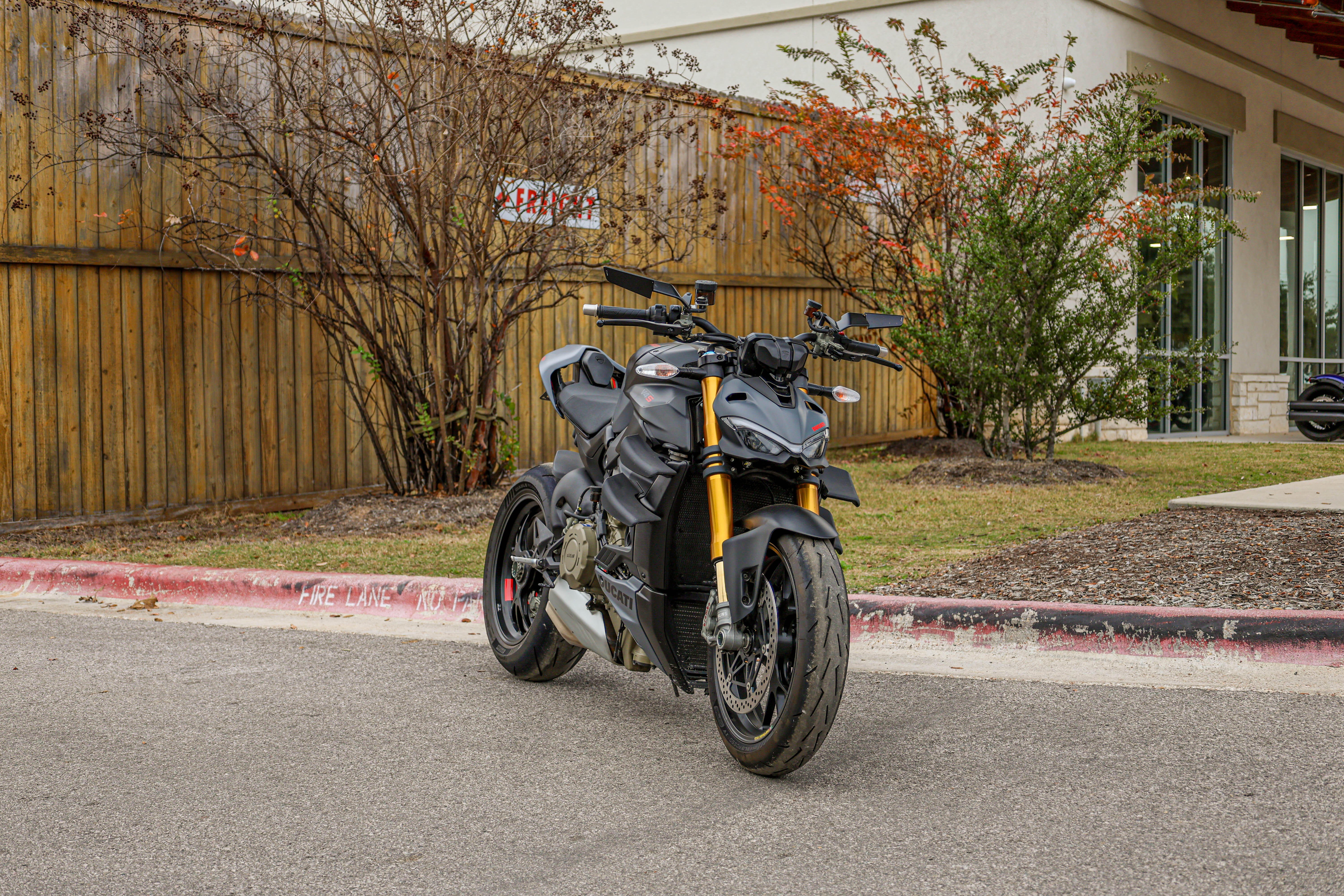 The natural evolution of the family is a bike that pushes the concepts of the "Fight Formula" even further, the key elements of which are the Panigale V4 stripped of the fairings, high and wide handlebars, 392 lb weight, 208 hp Desmosedici Stradale engine, biplane wings and latest generation electronic package.