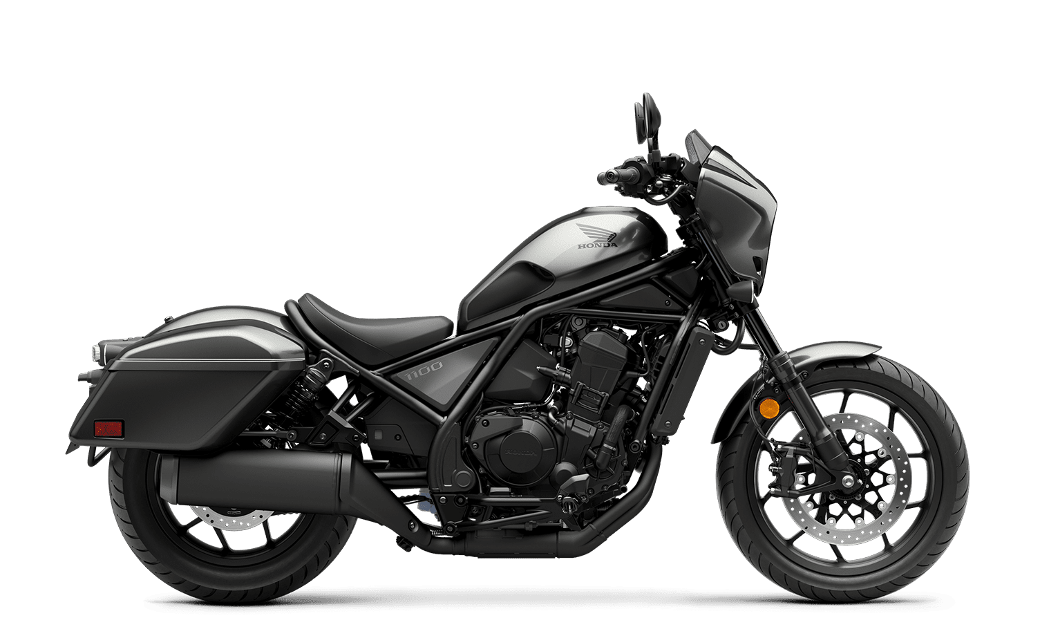 The Rebel 1100T takes the Rebel 1100's heart and adds the soul of a bagger with hard saddlebags and a sleek front fairing. For 2025, updates include an improved rider position, more comfortable seat, 5-inch TFT display, and Honda RoadSync. Available with optional DCT, it’s the perfect mix of power, comfort, and style.